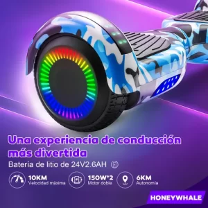 🌿 Honey Whale Z1 Hoverboard Eléctrico Azul – Música, Luces LED & Equilibrio Seguro