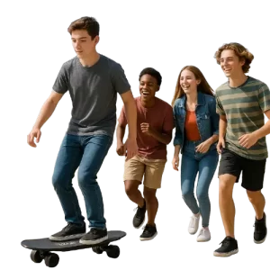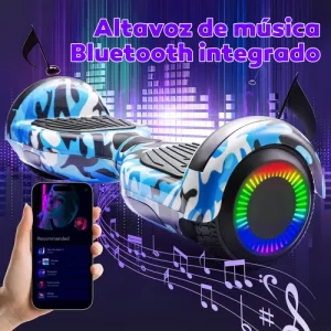 No solo es divertido, sino que también busca integrarse conscientemente en la vida familiar. Incluye un bastón auxiliar ajustable, ideal para dar los primeros pasos con total seguridad, y altavoces Bluetooth integrados para escuchar música favorita mientras se desliza, haciendo cada viaje más entretenido. Las luces LED RGB y las ruedas con iluminación no solo lo hacen ver genial de noche, sino que también aumentan la visibilidad, mejorando la seguridad.