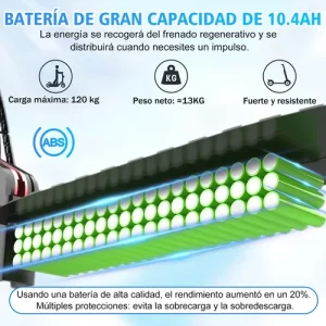- ✅ Batería de Litio de Alta Capacidad (10Ah/48V) : Carga en 7 horas y reduce el impacto ambiental gracias a su durabilidad y eficiencia energética.